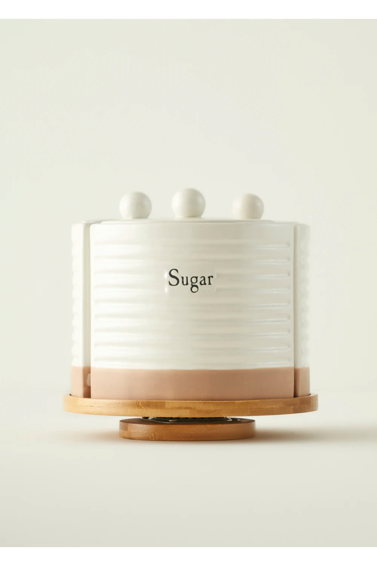 استمتع بمجموعة برطمانات سيراميك بيضاء مع حامل دوار (22×21.3 سم)