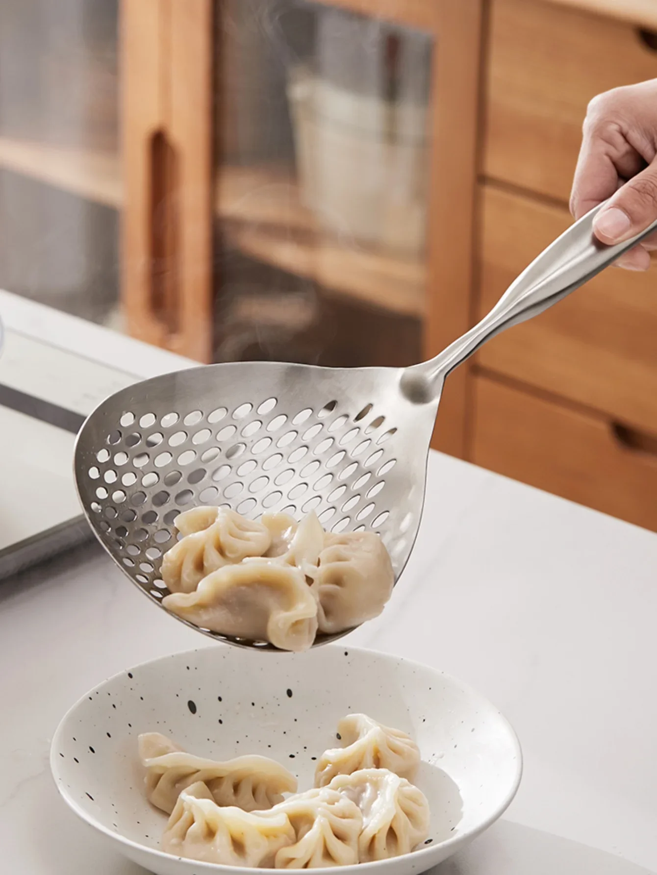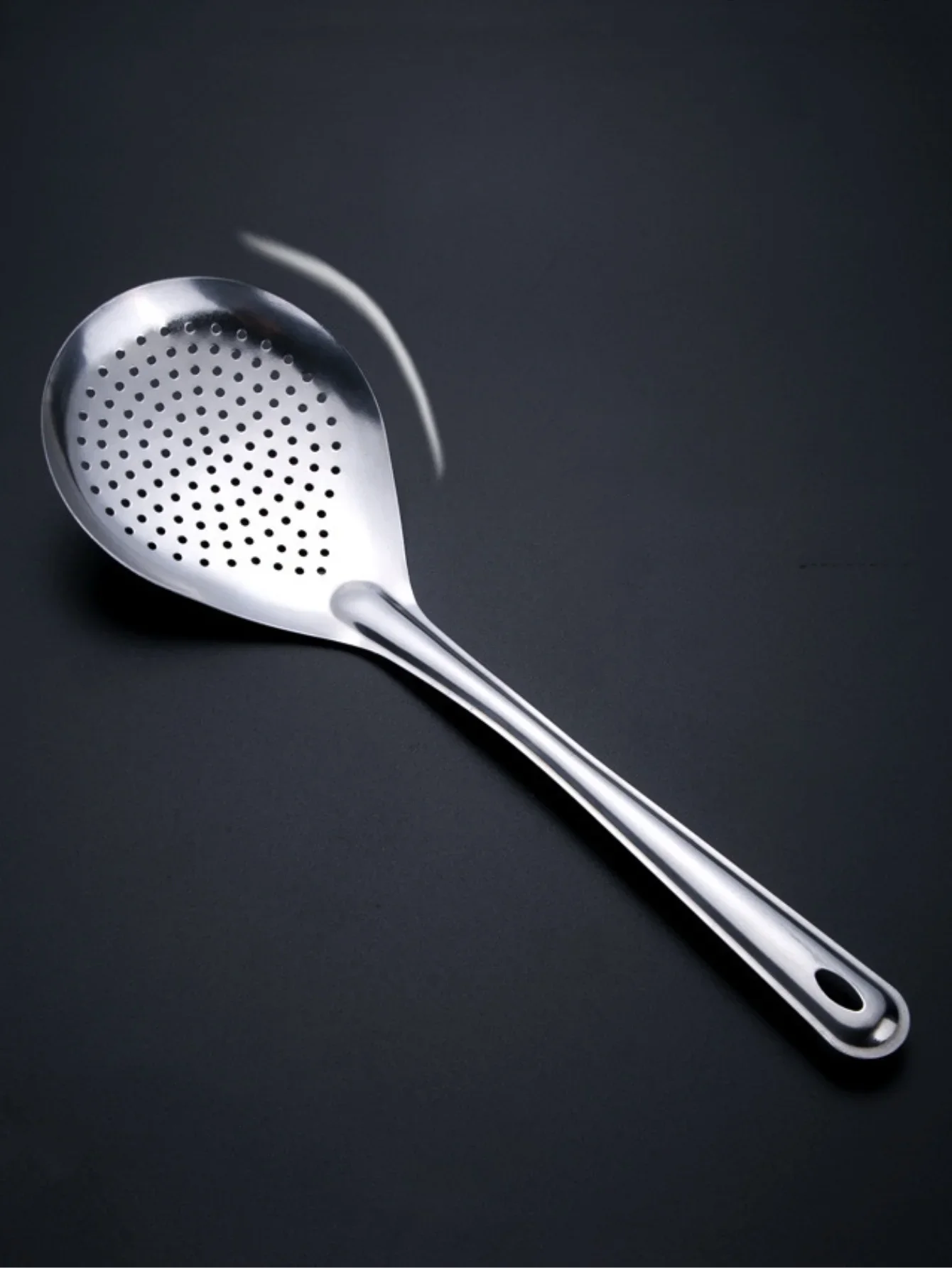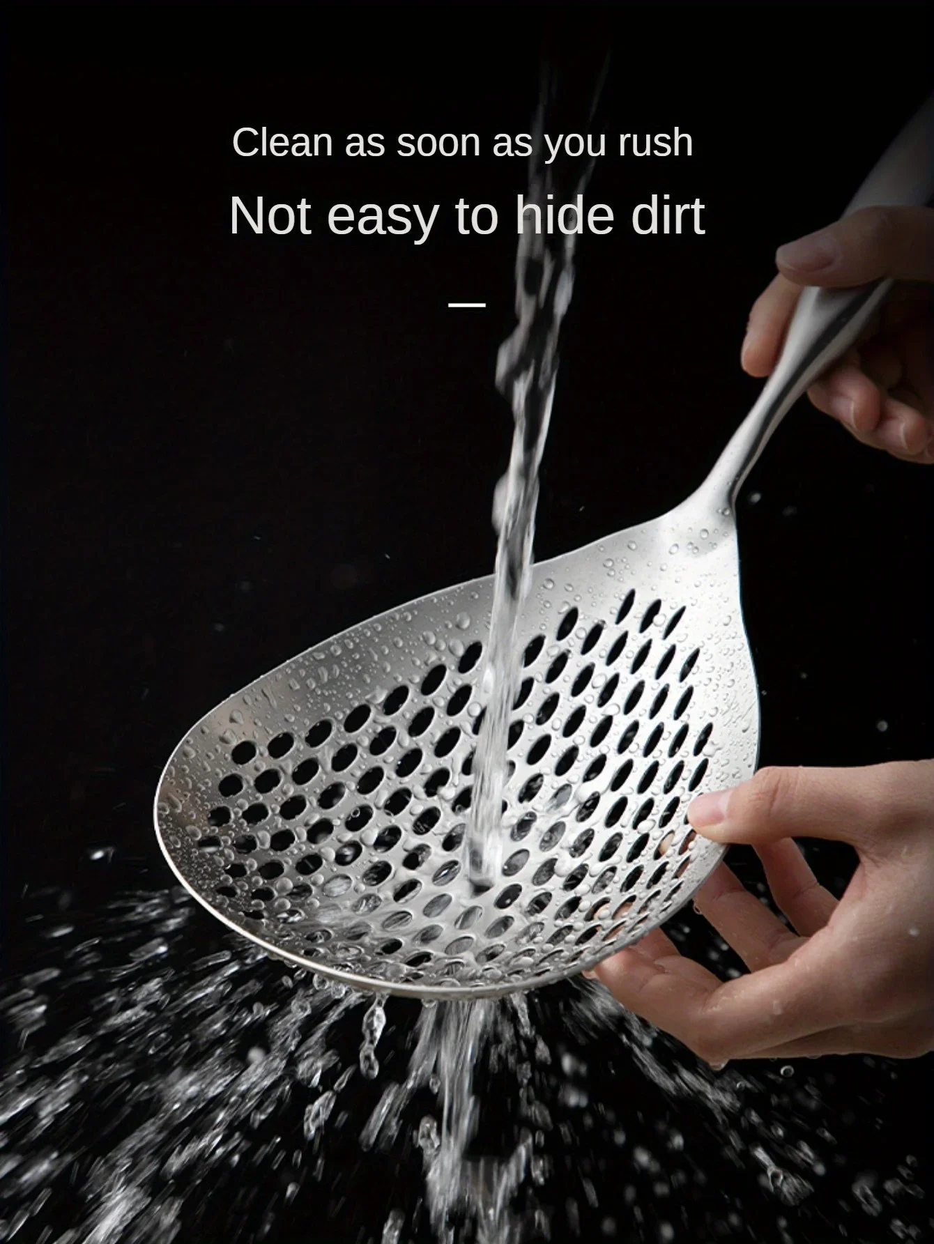 1 قطعة ملعقة كبيرة متينة من الفولاذ المقاوم للصدأ مصفاة مقشدة ، ملعقة مصفاة طعام شديدة التحمل للقلي والطهي ، أدوات المطبخ